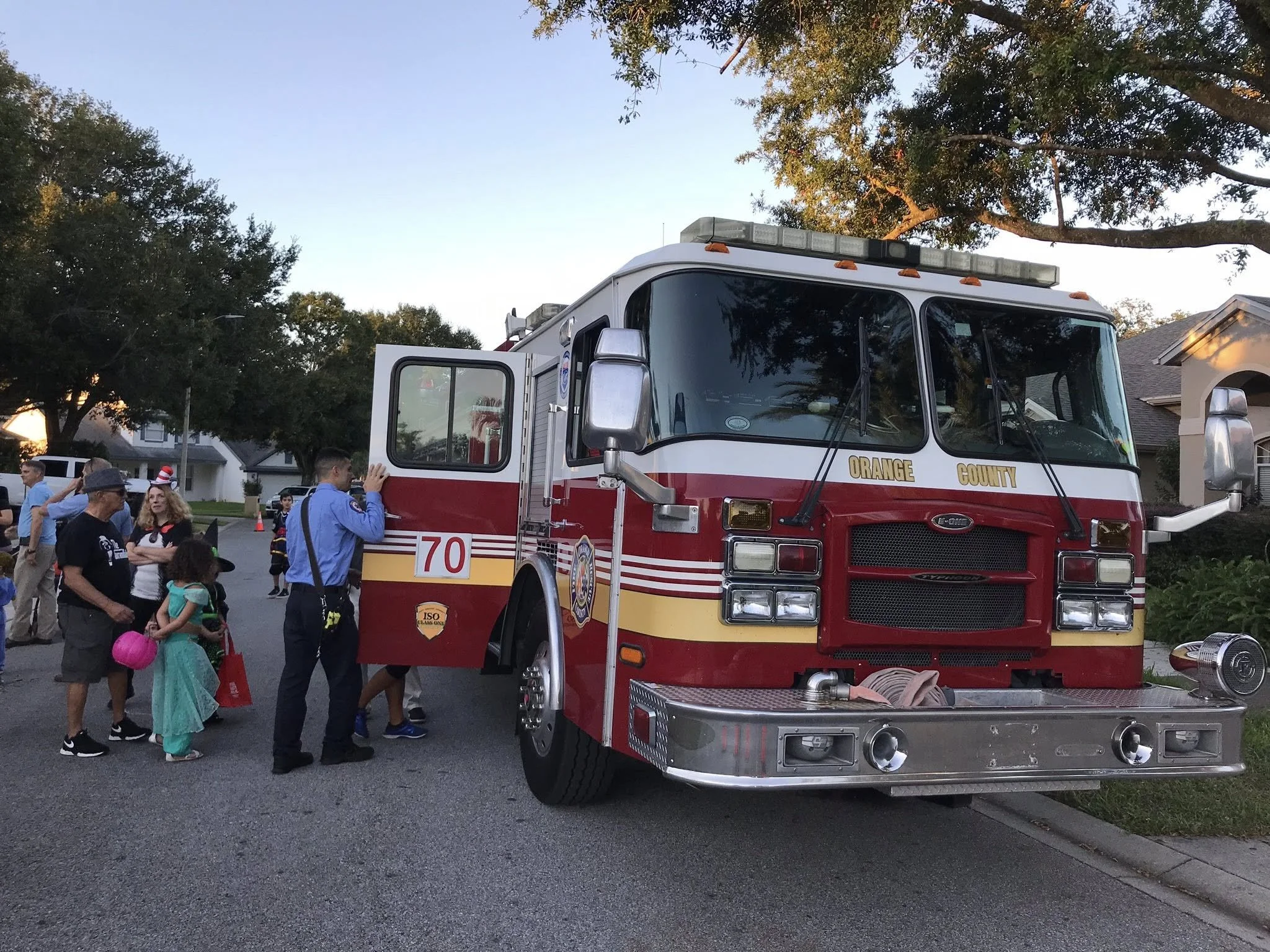 The parade is for all ages but tends to attract youngsters. We gather at the Middle School pass-thru at the back of Gatlin Place Subdivision. Local agencies, including Orange County Fire Department, bring service vehicles for the kids to see and explore (touch-a-truck!). Then the fire truck leads the parade.